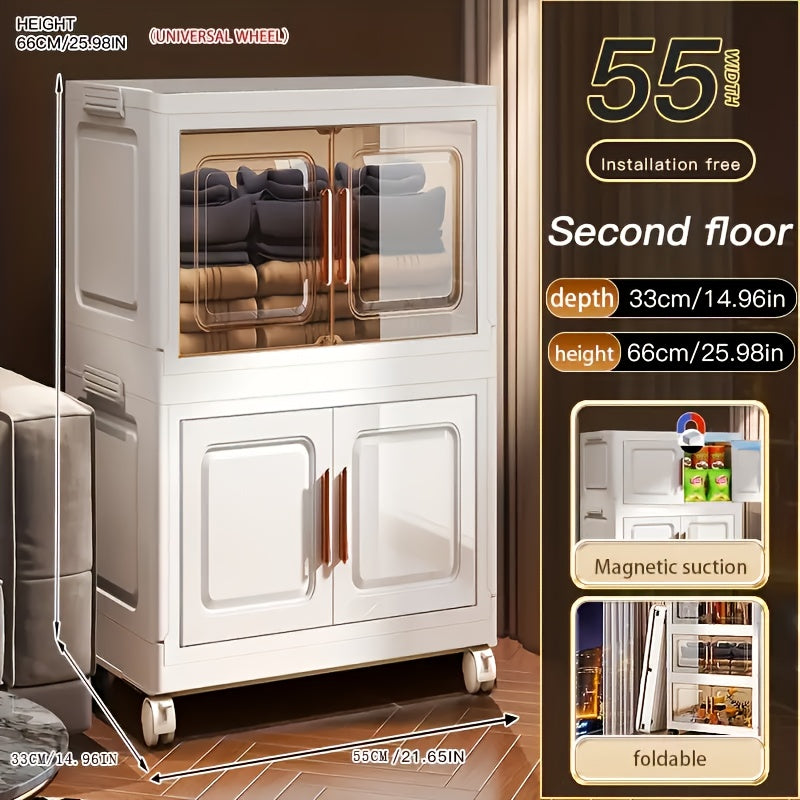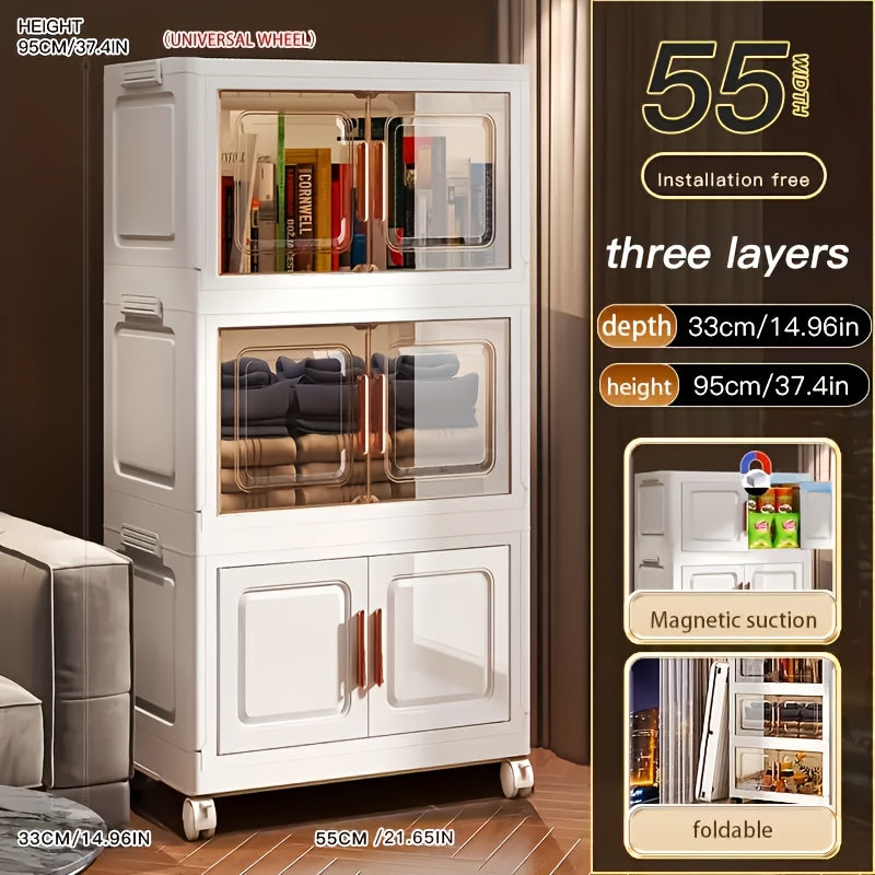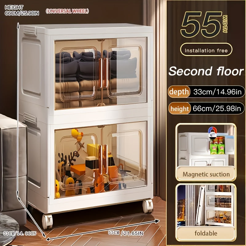 21.65inch 5--1 Layers Large Multifunctional Plastic Storage Box with Flip Cover, Stackable, Non Waterproof Rectangular Organizer, Suitable for Home And Office - Foldable, Multi-Purpose Storage Box for Clothing, Toys, Etc
