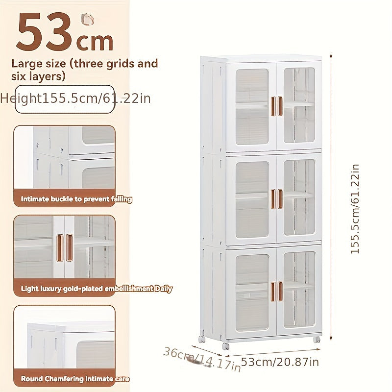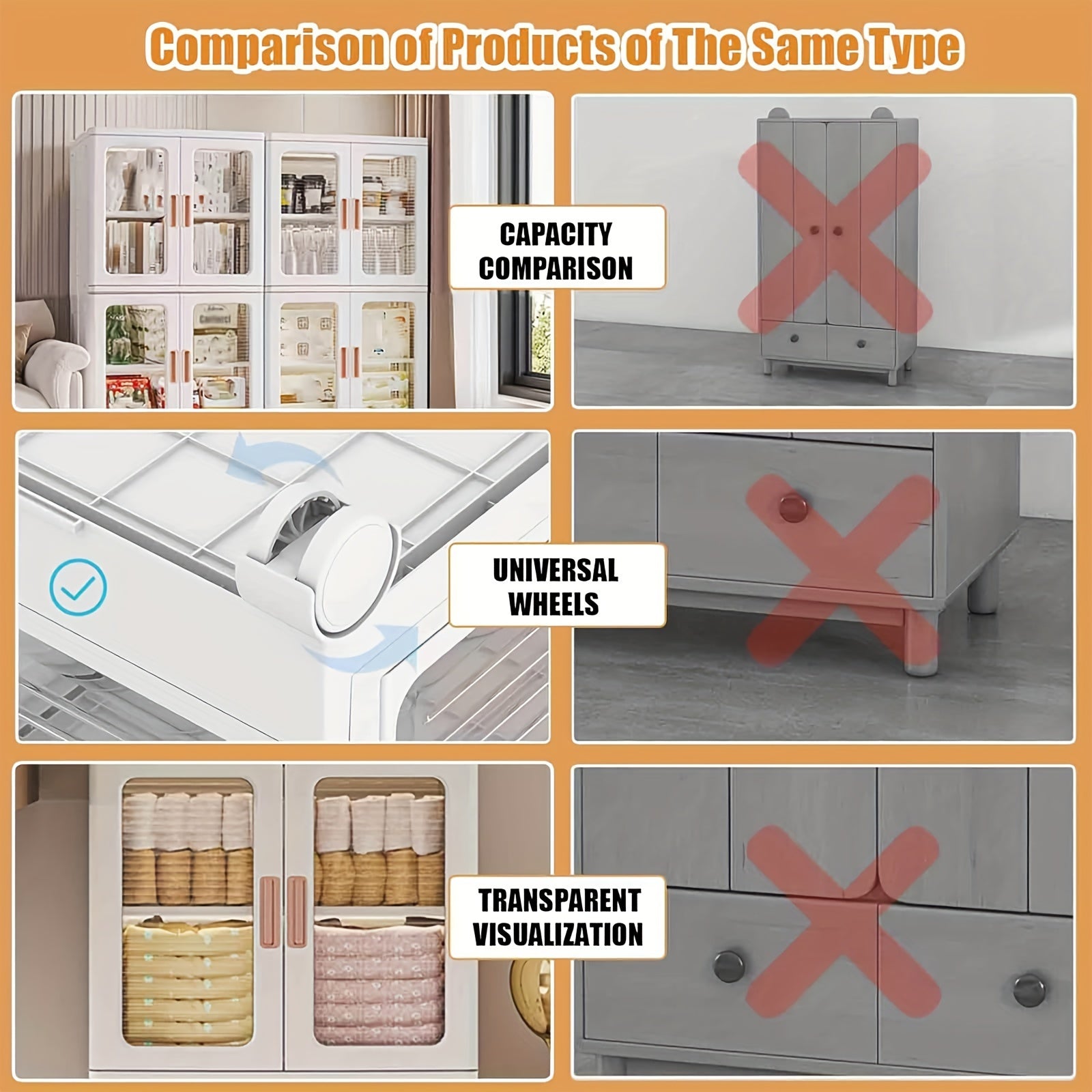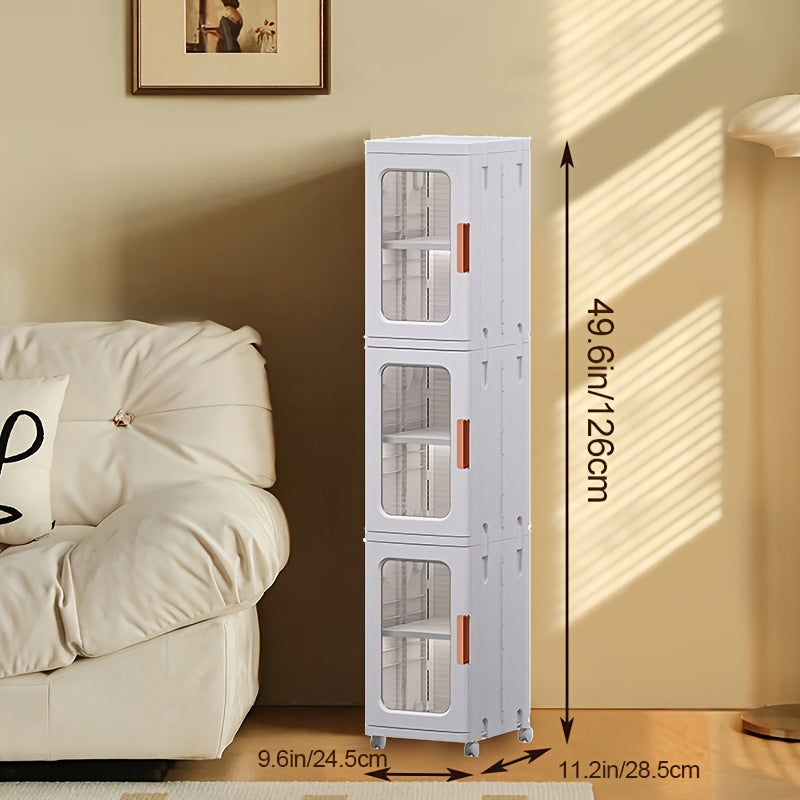 3 Tier High Capacity Stackable Plastic Storage Bins With Lids, Wheel, and Transparent Door Panels, Collapsible Folding Storage Containers For Closet Organizer Bedroom Home